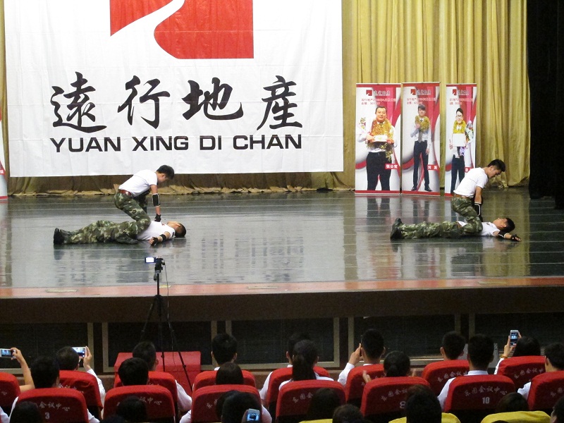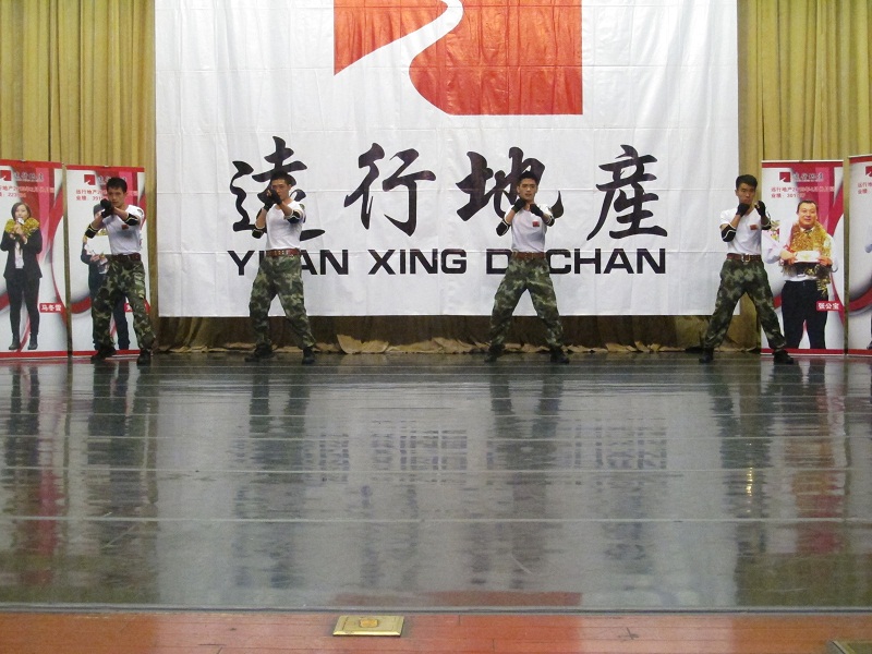 他們是尹華龍、李達、孟科、范沈杰,他們來自于銀河店,他們是來自部隊的軍人。他們在月會前一天的晚上趕到現場彩排,為了自己《擒拿拳》的節目,排練到晚上11點,為了達到自己心目中的最好效果,一聲又一聲的吼聲,一次又一次的重復動作,摔、打、踢、撲,他們用部隊的標準來定位節目,他們用軍人的要求來衡量自己。當你看到他們手肘、膝蓋全是傷,晚上又冒著雨回家的背景,你應該會肅然起敬;當你第二天看到他們傷口裂開,拿著整瓶云南白藥蓋到冒血的傷口上時,你必然會對他們欽佩,還會有一些心疼!這就是遠行的軍人,這就是遠行的脊梁!謝謝這些90后愿意把自己的青春和夢想都放在遠行來實現!伙伴們,我們又多了一份責任!