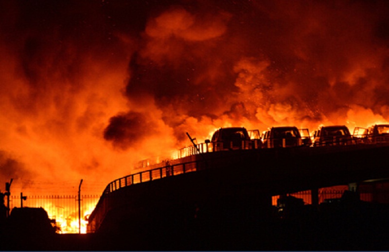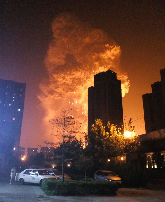 8月12日晚間,天津?yàn)I海新區(qū)國(guó)際物流中心區(qū)域瑞海公司所屬危險(xiǎn)品倉庫發(fā)生爆炸,爆炸物品是集裝箱內(nèi)的易燃易爆物品?,F(xiàn)場(chǎng)火光沖天,附近居民聽到巨大爆炸聲,有強(qiáng)烈震感,周邊有交通設(shè)施和居民住宅收到不同程度的損壞。